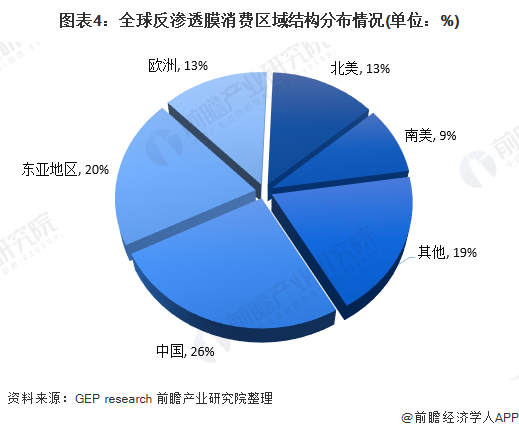 其次是東亞地區,反滲透膜消費占比達到了20%。歐洲、北美和南美分別占比為13%、13%、9%。