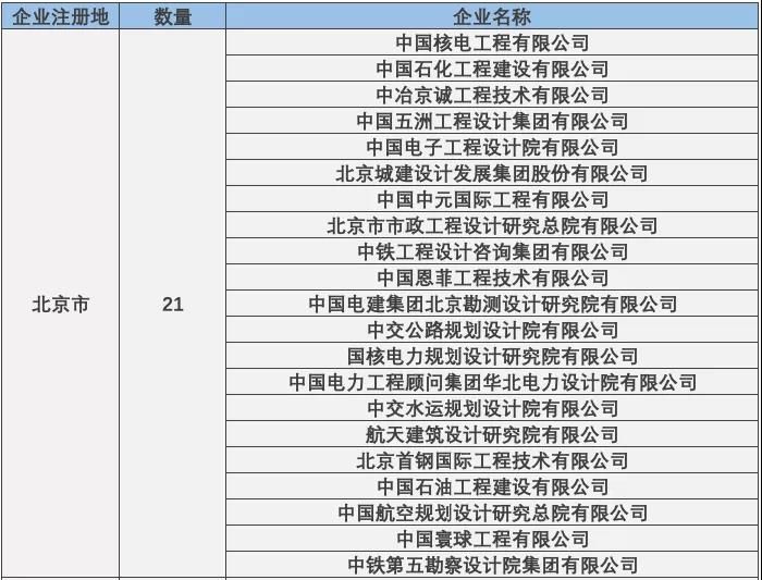 截至2020年7月,收錄在全國建筑市場監管公共服務平臺的工程設計綜合甲級資質的企業共有79家,在全國2萬多家工程設計類企業中,可謂是鳳毛麟角。從工程設計綜合甲級資質企業的地區分布來看,中國34個省級行政區,只有18個省和4個直轄市有設計綜合甲企業,其中11個省份都只有1家。北京、湖北和上海是設計綜合甲企業數量排名前3的省份。